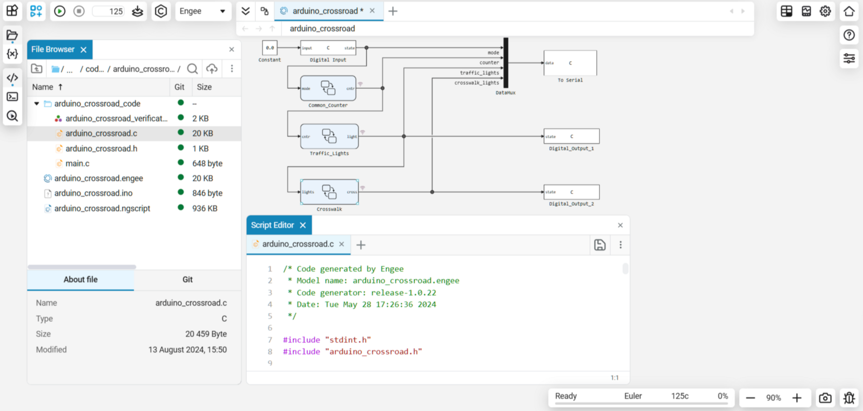 The Engee code generator produces fast, compact, human-readable, and portable C code that is fully independent of Engee. The generated code is traceable back to the model and suitable for industrial-grade deployment.